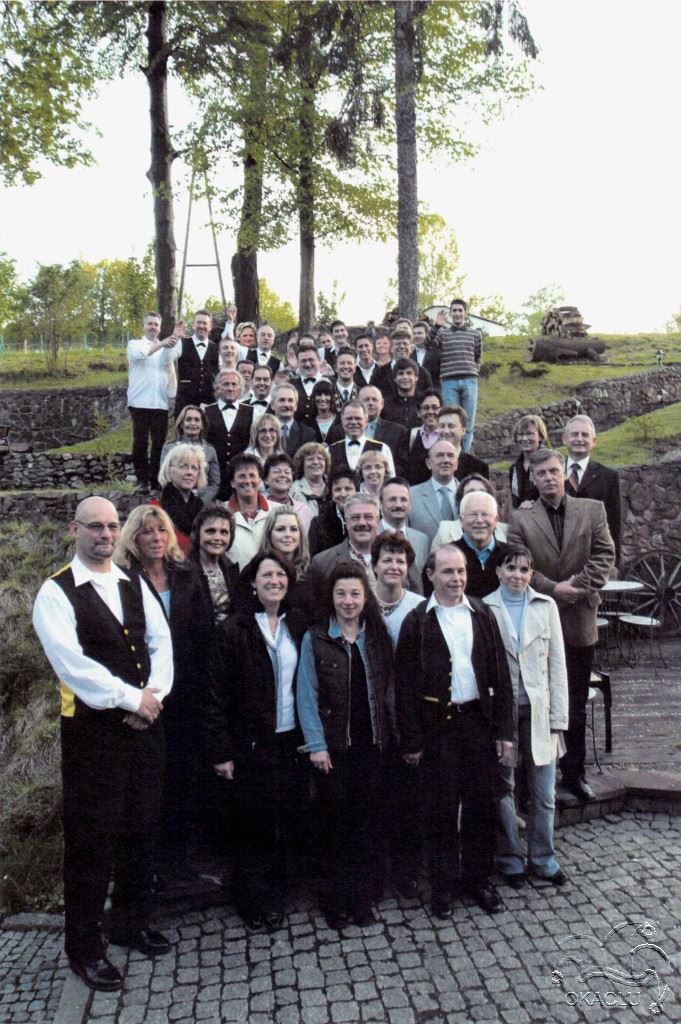 Auf Einladung des polnischen Landrats stand am Abend ein großes Festbankett in den Außenanlagen des Hotels auf dem Programm. Die Tatsache, dass wohl erstmalig alle drei bisherigen Landräte des Kreises Swidnica anwesend waren, Unterstreicht die hohe Wertschätzung, die dem OKACLU und seinen Begleitern entgegengebracht wurde. Im Kreise der Abtsteinacher erlebten die ehemaligen und amtierenden Landräte Wojciech Murdzek, Jacek Weis, der seinerzeit die Einladung ausgesprochen hatte, sowie Zygmunt Worsa einen Abend, wie man ihn nur beim OKACLU erleben kann. Gefeiert wurde die halbe Nacht, Lieder wurden gesungen, Polonaisen bahnten sich ihren Weg durch die Hotelanlage. Von Sprachschwierigkeiten oder gar Kontaktangst war kaum etwas zu spüren. Immer dabei war auch die Dolmetscherin Ewa Redeman, die an diesem Abend den OKACLU-Akteuren ein lustiges Trinklied in der Landessprache lernen konnte, dass bald lautstark gesungen wurde.