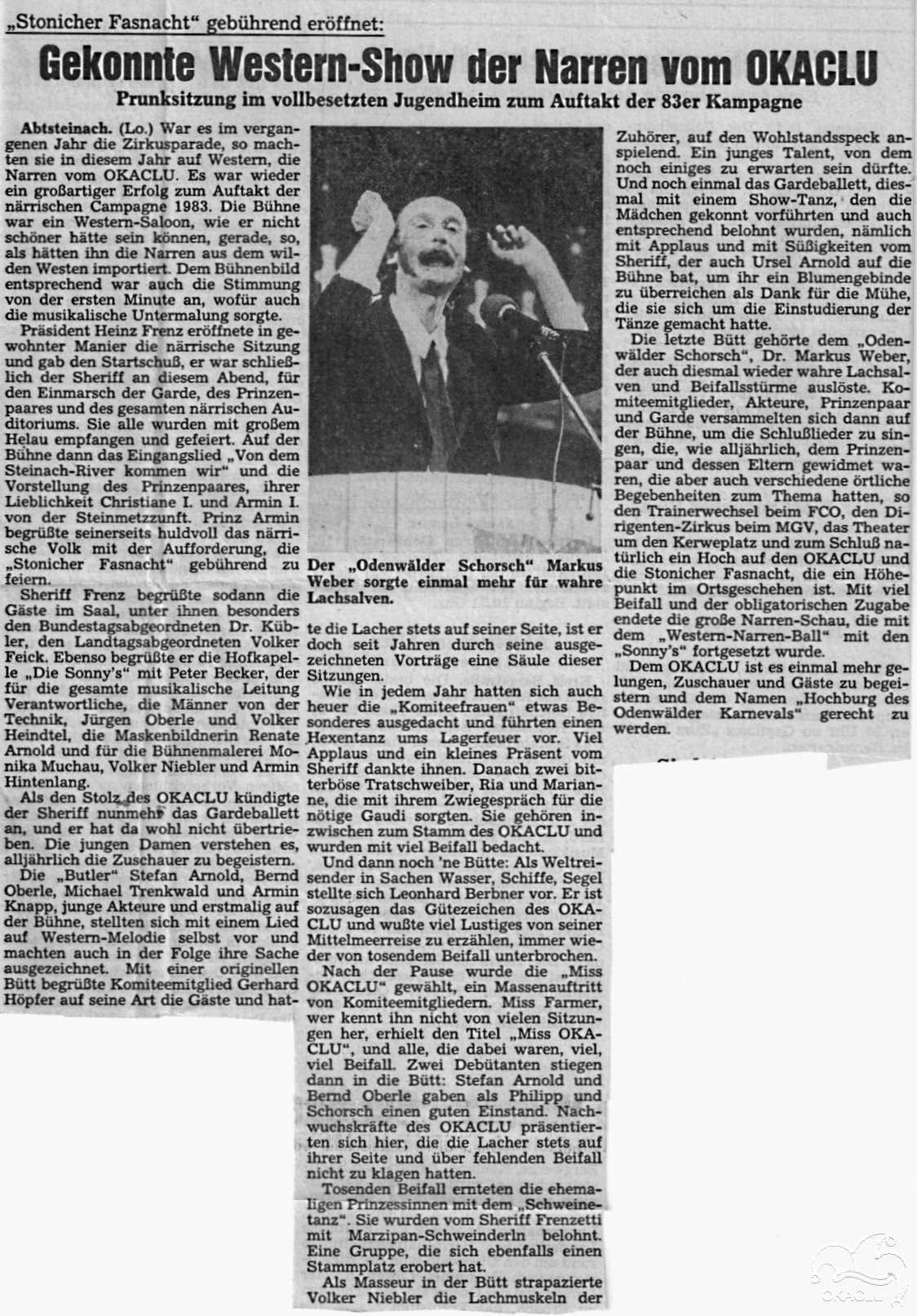 In gelockerter Atmosphäre wurde die Sitzung fortgesetzt, dabei schon die Weichen für die Sitzungen im Januar 1983 gestellt werden, wenn auch noch nicht im Detail. Aber ein Motto wurde bereits festgelegt, an dem sich die Sitzungen dann ausrichten werden. Die nächste Arbeitssitzung wurde auf Dienstag, 16. November, 20 Uhr, im Cafe Staier festgelegt. In bester Stimmung gingen die Kommiteemitglieder schließlich auseinander, die erste Schlacht war geschlagen.