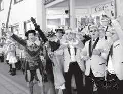 Die Damen der Schminke, ergänzt von ehemaligen Komiteefrauen, zogen in einer Bittprozession voller Litaneien und Fürbitten gegen die Männerherrschaft durch den Saal. Auf der Bühne angekommen, wurden ihre Bitten erhört und aus den „alten Besen“ wurden „junge Feger“.