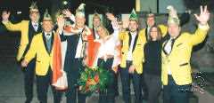 Die Spannung um das neue Prinzenpaar stieg von Minute zu Minute, doch war der Schleier noch nicht gelüftet. Die „Maus“ schraubte mit ihren Liedern von der „Sexy Emma„ und der „reizenden Köchin Constanze“ die Stimmung immer höher. Präsident Gärtner das Komitee auf, vor die Tür zu gehen, um das neue Prinzenpaar im Spalier zu empfangen. Ein großes Feuerwerk von „Hof-Feuermeister“ Reitermann kündigte den großen Moment an. Da öffnete sich die Tür des Gasthauses „Rose“ und der mutmaßlich Prinz Holger trat heraus, ging das Spalier ab und reihte sich dann aber bei den Untertanen ein. Die Verwirrung war den „Gelbjacken“ ins Gesicht geschrieben.