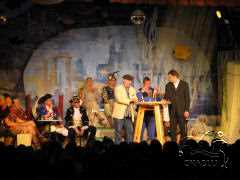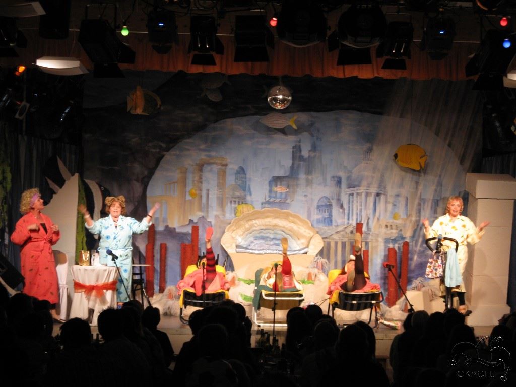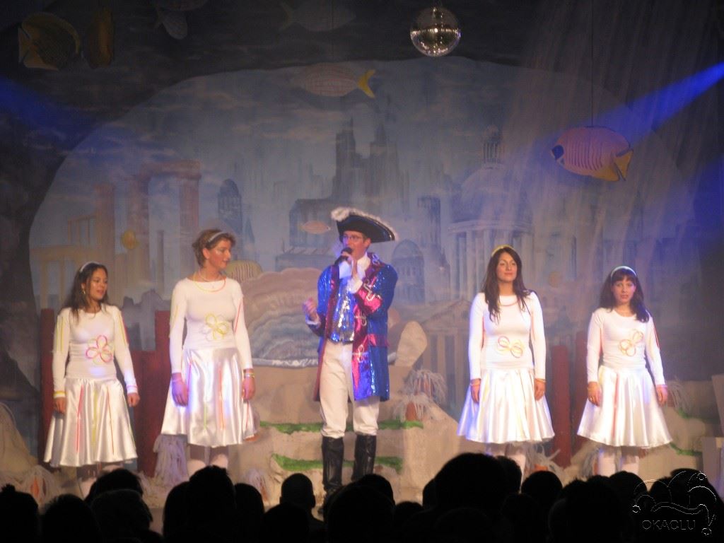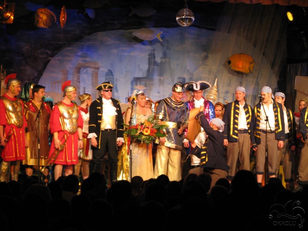 Ein Festival der Kulturen auf AtlantisWeit über 2000 Besucher folgten in sieben Prunksitzungen im Jugendheim den Narren des OKACLU in die versunkene, sagenumwobene Stadt auf dem Meeresgrund - Atlantis.Durch das Narrenprogramm führte Sven Tietze, der mit viel Witz und Esprit professionell moderierte. Schon die Eröffnung wurde unter der Regie von Präsident Hanspeter Gärtner und Jörn Brabez zu einem Festival der Kulturen, die sich auf Atlantis ein närrisches Stelldichein gaben. Ob Piraten, Legionäre oder Elfen, ob Schatzsucher, Götter und Jungfrauen, alle erfüllten die Bühne im Jugendheim tanzend und spielend mit farbenfrohen Leben. Dabei beeindruckten auch die Gardemädchen mit ihrer schwungvollen Tanzdarbeitung das Publikum. Traditionell stimmten alle das Mottolied der Kampagne an: "Karneval - hier im Saal!" In bester Dramaturgie folgte der Einzug des Prinzenpaares, Prinz Andreas I aus der Gilde der Schätzer aus der Kurpfalz zu Stonisch und hoch auf einer Sänfte schwebend Prinzessin Manuela II. "Seid gespannt was ihr jetzt seht, wenn sich Poseidons Reich aus der Tiefe erhebt", stimmte Prinz Andreas seine Untertanen ein. Ein Urgestein der Stonischer Fastnacht sorgte für die erste Beifallsrakete des Abends. Karl Berbner, oder "Karl Überwald", wie in Moderator Tietze aufgrund seines Bekanntheitsgrades nannte, ließ den berühmten Funken in seiner gelungenen Bütt schnell überspringen. So wurden die "Tolitäten benachbarter Orte" in bester Stimmung empfangen. Otto Rettig und "ihre Lieblichkeit" Alexander Kohl lieferten sich als Unter-Abtsteinacher Prinzenpaar ein spitzfindiges Wortgefecht mit dem "Siedelsbrunner Dreigestirn" alias Petra und Josef Berbner. In schauspielerischer Glanzleistung lieferten die beiden "Prinzenpaare" eine perfekte Show ab, bei der kein Auge trocken blieb. Die Gruppe "Schmink´n Go" ist bekannt für ihre tollen Ideen. In diesem Jahr waren die sechs Frauen zu Gast auf einer Wellness-Farm. "Ich fühl mich wohl in dem Ambiente, hier könnt ich bleiben bis zur Rente", zeigten sie keinerlei Heimweh. Ihr selbst verfasstes Mottolied "Beauty-Farm ist angesagt" sorgte nicht nur einmal für Szenenapplaus. Perfekte Wortspiele in fatalen Missverständnissen zwischen Dialekt und Schriftsprache - eine Szenerie, die den drei Stammtischphilosophen des OKACLU auf den Leib geschnitten scheint. So hatten Karl Berbner, Michael Trenkwald und Dr. Claudius Disam Lebenweisheiten für jeden Tag mitgebracht. Und Schankwirt Christopher Berbner wusste um die ganz besondere Wirkung des Bieres bei ihnen. Mit einem faszinierenden Farbenspiel endete der erste Teil. Die "Light-Girls" begeisterten dabei, von den Technikern perfekt in Licht und Szene gesetzt, mit ihren phosphorisierenden Kostümen. Mit dem großen Sketch der Komitees ging es weiter. Sven Tietze, Jürgen Hartmann und Sebastian Trenkwald hatten eine ganz besondere Bühnenshow zusammengestellt, die für die Komiteemitglieder echte "Paraderollen" vorsah. Sagen, Mythen, Märchen und reale Geschichte mischten sich im Drehbuch zu einem bunten Treiben von Kapitain Hook und Odysseus bis hin zu Piraten, Touristen, Hartz-4-Empfängern und der Meerjungsfrau Arielle. Joanna entpuppte sich als Schmusekatze und verschmähte das Liebesgeständnis von Stuart Sascha. Robinson Crusoe flüchtete vor seinem Kumpel Freitag, dem er die Frau ausgespannt hatte, und Peter Pan outete sich als Inselgast "vom anderen Ufer". Als Starreporter Horst Schlemmer die Öffentlichkeit von den merkwürdigen Geschehnissen auf Atlantis informierte, nahte auch schon der Retter Poseidon, von Prinz Andreas in der Nautilus chauffiert. Das Publikum belohnte diesen einfallsreichen Sketch mit mehreren Raketen. Sein Büttendebüt gab Dennis Schäfer, der als Partyplaner seinem einfältigen Kunden (Jochen Czelk) eine Mega-Party aufschwatzte. Schäfer bestand seine Feuertaufe bestens und Czelk zeigte sich einmal mehr als souveräner Fastnachtsredner. Kann man auf einer Riesenmuschel spielen? Stimmungkanone Stefan Arnold funktionierte sie zum "Walhorn" um, dessen Spiel so manches Getier anlockte. Der "Philpp" des OKACLU, in diesem Jahr ohne Sepp ("Der ist schwanger"), hatte wieder seine Stimmunglieder mitgebracht. Schließlich marschierte er mit seinem Hit "Mer gehn net hoam" durch den Saal, begleitet vom rhythmischen Klatschen des Publikums. Magikowskys der HöhepunktDen absoluten Höhepunkt aber setzten Sebastian Trenkwald und Jörn Brabez. In einem fernsehreifen Auftritt beigeisterten sie als "Magikowskys", ein Zauberer mit seinem russischen Austauschzauberer Jatzeck. Perfekte Täuschungen, artistische Spitzenleistungen und nicht allzu ernst zu nehmende Magie bildeten eine Bühnenshow der Extraklasse, bei der es keinen im Saal auf dem Sitz hielt.Zu einem Erlebnis für die Augen wurde die tänzerische Entdeckungsreise des OKACLU-Show-Balletts in den Tiefen des Ozeans, die zu einem Kampf zwischen "Gut und Böse" wurde, in einer ausdruckvollen Choreographie hervorragend tänzerisch umgesetzt. Wenn ein Hausmeister zur Hochzeit will und auf der Fastnacht landet, darf man auf seine Kommentare gespannt sein. Und wenn der Hausmeister von dem Vollblutfastnachter Michael Trenkwald verkörpert wird. sind die Lachmuskeln extrem gefordert. Der Meister der Narretei zeigte sich auch 2008 einmal mehr als Büttenredner, der verbale Komik und Mimik gleichermaßen beherrscht. Zum großen Finale baten Tietze und Präsident Gärtner nochmals alle Akteure auf die Showbühne im Jugendheim. Dem Mottolied der Kampagne folgte der Song auf das Prinzenpaar. Und als Hunderte Sternspritzer im Saal Funken sprühten, stimmten alle in das Lied von der "Stonischer Fastnacht" mit ein. Fleißige Helfer hinter den KulissenSieben bis auf den letzten Platz ausverkaufte Prunksitzungen mussten es schon sein, um der großen Kartennachfrage annähernd gerecht zu werden. Selbst eine achte Sitzung hätte den Saal des Jugendheimes nochmals gefüllt.Diesen Sitzungsmarathon zu organisieren, sind Aufgaben, die die V