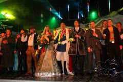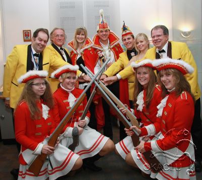 Simon und Meike schwingen das ZepterDer Schleier ist gelüftet. Die Narrenwelt in Ober-Abtsteinach hat einen neuen Prinzregenten. Traditionell fand sich das Komitee des OKACLU am Abend des 11.11. nach dem Martinzug im Café Krapp zur Vorstellung des neuen Prinzenpaares für die Kampagne 2009/2010 ein. Pünktlich um 20.11 Uhr eröffnete nach einem schwungvollen Narhallamarsch Hans-Peter Gärtner die neue Kampagne.Sein Dankeschön galt dem scheidenden Prinzen paar Steffen I. und Prinzessin Lena, die "nicht nur auf eine tolle Kampagne zurückblicken können, sondern den OKACLU überall würdig vertreten haben und als Botschafter des Frohsinns und der Narretei vorbildlich unterwegs waren", betonte der Präsident. Gewohnt stimmungsgeladene Musik mit extrasvaganten Texten heizten richtig ein und als Fanfaren- und Trompetenklänge von draußen in den Ballsaal des Café Krapp drangen, hielt es die Komiteemitglieder in ihren Galauniformen nicht mehr auf den Plätzen. Mit musikalischem Geleit von Blechbläsern der Hofkapelle KKM Ober-Absteinach näherte sich ein verschleieres Paar der Szenerie, hell erleuchtet durch ein Feuerwerk von Bruder Dieter. Noch wusste keiner, wer sich unter den Masken verbarg, doch schon jetzt jubelten Komitee, Prizengarde und allerlei "Fatzzvögel" den neuen Regenten zu. Vizepräsident Dr. Bernd Disam schritt endlich zur Demaskierung. Das Paar entpuppte sich als Prinz Simon I. und an seiner Seite ihre Lieblichkeit Prinzessin Meike I. Prinz Simon I. heißt mit bürgerlichem Namen Simon Becker. Der Zahnarzt ist ein echtes "stonischer" Kind und stammt aus dem Musikergeschlecht der Beckers. Vater Peter Becker, bekannt als Entertainer und Bandleader der legendären SONNYS, hat ihm wohl das Talent mitgegeben, das nötig ist, um die närrischen Showbühnen in der fünften Jahreszeit zu beleben. Prinz Simon I. trägt den Beinamen "vom Baderstuhl zum Narrenthron", der sowohl seinen bürgerlichen Beruf (früher war es im Volksmund "der Bader", die die Leute von ihren Zahnschmerzen befreite), wie auch seine Aufgabe als Regent der Narren bis Aschermittwoch beschreibt. Ihre Lieblichkeit Prinzessin Meike I., mit bürgerlichem Namen Meike Brabez, ist ebenfalls ein Ober-Abtsteinacher Mädchen. Auch sie ist in der großen Fastnachtsfamilie des OKACLU keine Unbescholtene mehr, war es doch ihr Brunder Prinz Jörn I., der die Narren in der Kampagne 2004/2005 regierte. Zur Inthronisation übergab das scheidende Prinzenpaar Steffen und Lena dem neuen in einer feierlichen Zeremonie mit voluminöser Orgelbegleitung die närrischen Insignien, Prinzenkappe, - mantel und -zepter. Groß war der Jubel und lang die Schlange der Gratulanten, wollte doch jeder dem neuen Regentenpaar persönlich seine Aufwartung machen. So feierte man bis in die frühen Morgenstunden hinein und schnell verbeittete sich die freudige Kunde: der OKACLU hat ein neues Prinzenpaar. |