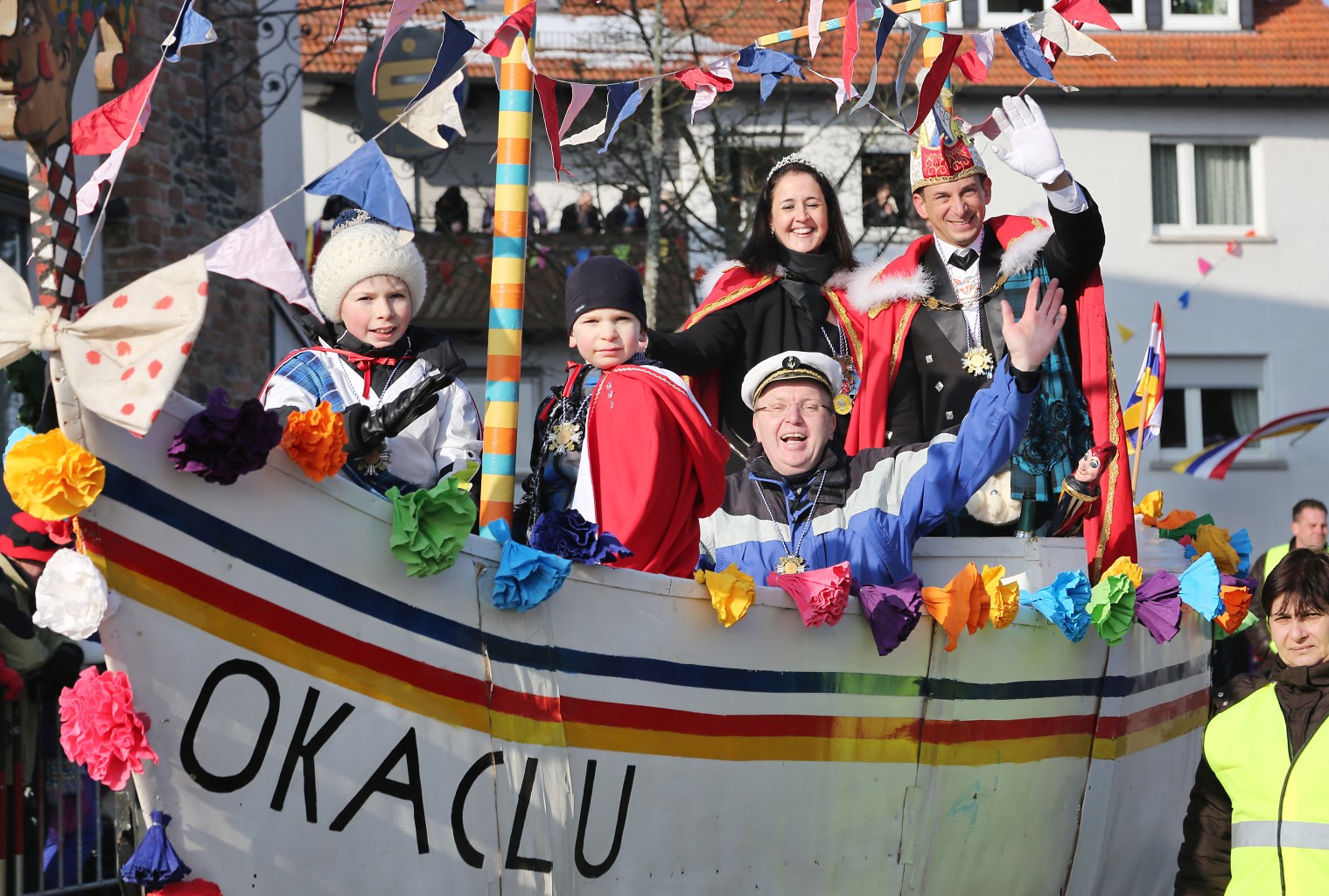 Top-Event für die ganze RegionOber-Abtsteinach war gestern im Ausnahmezustand: Bei bestem Umzugswetter wollten wieder Tausende Besucher die Boa Narhalla sehen. Schunkelnde, singende und tanzende Menschen am Straßenrand verwandelten die Hardberggemeinde in ein großes närrisches Meer. Der traditionelle Fastnachtsumzug des OKACLU gehört zu den Top-Events der ganzen Region. Die Zuschauer standen an der Zugstrecke teilweise so dicht gedrängt, dass die "Boa Narhalla" nur langsam vorankam. Der närrische Lindwurm in der Odenwälder Fastnachtshochburg bestand gestern unter der Schirmherrschaft von Bürgermeister Rolf Reinhard aus insgesamt 44 Zugnummern, darunter stolze 16 Motivwagen.Mehrere Security-Beauftragte waren ebenso vor Ort wie der Malteser Hilfsdienst. Zusammen mit den Beamten der Polizeistation Wald-Michelbach leisten die Organisationen seit Jahren wertvolle und notwendige Dienste und sorgten für einen weitgehend reibungslosen und sicheren Ablauf des närrischen Geschehens. Auf der Ehrentribüne auf dem Kirchenvorplatz kommentierte OKACLU-Präsident Sven Tietze mit seinem Co Moderator Christian Birn, humorvoll die einzelnen Wagen und Gruppen und brachte die Gäste zusammen mit dem "DJ" Dennis Montag in die rechte Stimmung für die Narrenparade. Es ist schon gute Tradition, dass sich die Bürgermeister der Region bei der Boa Narhalla auf der Ehrentribüne ein Stelldichein geben. In diesem Jahr ließen sich die Bürgermeister Joachim Kunkel aus Wald-Michelbach, Helmut Morr aus Birkenau und Schirmherr Reinhardt aus Abtsteinach das närrische Treiben nicht entgehen. Streifenwagen an der SpitzePünktlich um 14.11 Uhr gab Zugleiter Gerhard Berbner den Startschuss. Ein Streifenwagen des Wald-Michelbacher Reviers an der Spitze führte traditionell den närrischen Lindwurm durch die Straßen von Ober-Abtsteinach. Mit der motorisierten Badewanne, ein Markenzeichen der Boa Narhalla, waren traditionell Alex Gärtner, Jörn Brabez und Sebastian Trenkwald unterwegs, waren überall zu finden und bahnten mit ihrem originellen Gefährt den Weg. Unterstützt wurden sie von Claus Hintenlang auf seinem Narrenbike.Die Hussmougge aus Aschbach brachten den ersten Motivwagen mit Fußgruppe mit zur Boa Narhalla. In diesem Jahr widmeten sie sich dem Thema "Eiszeit". Farbenfroh zeigten sich die nächsten beiden Zugnummern. Die 4. Klasse der Steinachtal-Grundschule kam mit ihrer Lehrerin Schmitt als Grüffelos, die Kindergartenkinder und ihre Eltern waren als Schmetterlinge mit von der Partie. Am weitesten angereist war die Schwester der Familie Hintenlang, Lucia van Amsterdam, mit ihrer Familie. Sie bereicherten den Narrenzug, wie schon die Jahre zuvor, auf ganz besondere Art mit dem Motivwagen "Holland-Meisje" aus dem Nachbarland. Närrische Hexen aus Unter-Abtsteinach hatten ihre Besen beiseitegelegt und waren lautstark mit Quads unterwegs. Aus dem Nachbarort Siedelsbrunn kam eine Fußgruppe des TV 02 unter dem Motto "Die Welt grüßt Schottland". Für einen Motivwagen mit viel Leben und Aktion sorgte Ex-Prinz Claudius I. vom Burghof, Dr. Claudius Disam, der sich mit seiner Gruppe auf Weltraum-Exkursion begab. Für viel Stimmung an der Wegstrecke sorgten die "Dancing Ravens", die Line-Dance-Gruppe des FCO mit ihrer Performance. In Anlehnung an ihren gelungenen Auftritt bei den Prunksitzungen des OKACLU war die Gruppe Schmink’n’Go als Landärzte on Tour dabei. Hochprozentig ging es bei den Montagswanderern um Gerald Arnold zu. Als traditionelle Whisky-Brenner brachten sie in ihrer mobilen Destille nur "den besten Stoff" mit. Den Minions, einer Fußgruppe der OKACLU-Dreamgirls und Mitgliedern des OKACLU-Show-Balletts, folgten die OKACLU-Biker, die es sich auch in diesem Jahr nicht nehmen ließen, wie schon bei den Prunksitzungen ihren "Stammverein" auch beim Umzug zu unterstützen. Der folgende Zugblock erinnerte an die atemberaubenden Tänze der Prunksitzungen bei deren Eröffnung. Kobolde, Kriegerinnen und, dem Motiv geschuldet, Filippo und Marco, die Gebrüder Giarousso als urwüchsige Schotten, tanzten durch die Straßen. Nun näherte sich der Höhepunkt der Boa Narhalla: Vornweg die Hofkapelle des OKACLU, die Trachtenkapelle KKM Ober-Abtsteinach, die unter der Stabführung von Stefan Wetzel die Ankunft der prinzlichen Hoheiten ankündigte. Böllerschüsse der Kanoniere Bernd Oberle und Stefan Arnold auf ihrer Konfettikanone erklangen zum Salut. Beschützt von der feschen Prinzengarde in anmutigen Gardekostümen gaben sich Prinz Sascha I., Lord of the upper Stoanisch Highlands, und ihre Lieblichkeit Prinzessin Catherine I. auf ihrem traditionellen Prinzenschiff die Ehre und steuerten unter Kapitän Hans Lammer sicher durch die Menschenmassen am Straßenrand. Lustige HofnarrenIn seinem Gefolge hatte der närrische Prinzregent eine ganze Reihe lustiger Hofnarren dabei. Den Hoheiten der Kampagne folgten traditionell die Honorationen des OKACLU. Nach einer schottischen Fußgruppe aus der Eröffnungsshow schlängelten sich Motive der schottischen Highlands, kompakt dargestellt auf einem ansprechenden Motivwagen, die Zugstrecke entlang. Für einen der spektakulärsten Motivwagen zeigte sich Baumeister Gerhard Kunkel verantwortlich. Unter seiner Anleitung zauberten die Protagonisten eine komplette Burganlage der schottischen Highlands auf die Wagenrolle.Die Honorationen des OKACLU, die Knorzels, waren die Burgherren und warfen, wie übrigens alle Motivwagen und Gruppen, unzählige Süßigkeiten und Leckereien zu den Besuchern, sehr zur Freude der kleinen "Bonbonjäger". Dem Burgwagen folgten böse Hexen. Frauen und Kinder aus Abtsteinach trieben hierbei als "dunkle Feen ihr Unwesen. Wer die Fernsehsendung "Dolles Dorf" im hr-Fernsehen verfolgt hat, kennt ihn, Abtsteinachs Daniel Düsentrieb Janis Schütz. Die Besucher an der Zugstrecke bestaunten den einzigen fahrenden Bierkasten der Welt. Im Anhänger hatte er eine selbst gebaute Gulaschkanone dabei und verteilte an die Besucher Chilli con Carne. Rugby