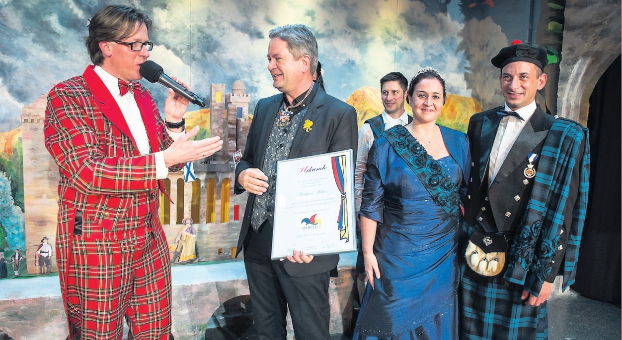 Der OKACLU im Land der BraveheartsWeit über 2000 begeisterte Besucher begleiteten den OKACLU auf seinem Trip nach Schottland und folgten damit dem Mottolied der Kampagne: „Steh auf, komm mit, auf unseren Trip!“ Das beeindruckende Bühnenbild erlaubte, mit viel Liebe zum Detail einen Blick in das Wolken behangene schottische Hochland. Im Vordergrund schienen die warmen Fensterlichter eines alten Schlosses und einiger Wohnhäuser der Highländer die Besucher zum Verweilen einzuladen.Zusammen mit den professionellen Lichteffekten der OKACLUTechniker wurde die Szenerie auf der Jugendheimbühne zu einem optischen Leckerbissen. Dudelsackbläser, Fahnenträger und Trommler des Komitees zogen ein und bereiten mit ihrem Spiel den Weg für Präsident Sven Tietze und Jörn Brabez. Beide begrüßten die Gäste mit einem akzentuierten deutsch-englisch und luden zum Mitfeiern im Land der Kelten ein. Es folgte eine Reihe emotional choreografierter Tänze verschiedener Gruppen, von denen jeder in überaus geschmackvollen und ansprechenden Kostümen seine eigene schottische Geschichte erzählte und darstellte. Kobolde zeigten rockend die mystische Welt der Highlands. Hirten und Schafe vermittelten ein vermeidlich friedliches Bild, bis sich die Schafe als temperamentvolle Tänzerinnen entpuppten. Kriegerund Kämpferisches erzählten die Tanzchoreografien der Celtic-Kriegerinnen und der tapferen Bravehearts, einem Männerballett auf höchstem Niveau. Schließlich erinnerten Drachen an viele Geschichten um das viel beschriebene Ungeheuer von Loch Ness. Nach den spektakulären Tänzen zogen alle Akteure des Abends durch den Saal auf die Showbühne ein. Das Publikum erhob sich von seinen Plätzen und begrüßte die Protagonisten, allen voran die neuen Prinzregenten der Kampagne mit frenetischem Beifall und Helau-Rufen. Bevor das Mottolied der Kampagne erklang, stellte Präsident Tietze das Prinzenpaar des OKACLU seinen Untertanen vor: Die Narren huldigen zumindest bis Aschermittwoch Prinz Sascha I., Lord of the Upper-Stonisch Highlands und, an seiner Seite, ihre Lieblichkeit Prinzessin Catherine I. Dem Mottolied der Kampagne 2015 folgte die musikalische Reminiszenz an das Prinzenpaar. Dann der Moment, bei dem Prinz Sascha in seinem Prolog seinen Untertanen Order gab, mit dem OKACLU Karneval in Schottland zu feiern, eine große Feier durch die Nacht. Die Narren bejahten die Aufforderung ihres Regenten mit lautstarkem Helau. Karl Berner kam als Odenwälder Karl wie alle Jahre durch den Saal. Für ihn ist die erste Bütt einer Prunksitzung keine Belastung. Im Gegenteil, dem exzellente Büttenredner gelingt es immer wieder, mit seinen Gags das Publikum souverän und pointensicher zu begeistern. Es sind die Kurzen „Burner“, mit denen Karl Berbner die Funken überspringen lässt. So stellte er beispielsweise fest: „Der liebe Gott muss ein Mann sein, denn wäre er eine Frau, hätte er schon zu uns gesprochen!“ Die Gruppe Schmink’n Go faszinierte in jedem Jahr das Publikum im Jugendheim mit tollen Ideen und Kostümen. In diesem Jahr glänzten die ehemaligen Prinzessinnen mit einem ebenso packenden wie absurden Schattenspiel. Als renommiertes Ärzteteam der Odenwaldklinik ließen sie das Publikum eine Operation miterleben, die es in sich hatte. OP-Besteck und Methode, Narkose und OP-Ergebnis sprengten dabei die kühnsten Vorstellungen. Die OKACLU-Commedians gehören seit Jahren zum festen Bestandteil der Prunksitzungen und immer zu deren musikalischen Höhepunkten. Begleitet von Kapitän Günther Hintenlang am Klavier kamen sie in schickem Matrosenoutfit auf die Bühne und intonierten live und perfektioniert das anspruchsvolle Arrangement der Comedian Harmonists „Das ist die Liebe der Matrosen“. Eine musikalische und chorische Leistung der Extraklasse, die das Publikum auch in diesem Jahr wieder ins Staunen versetzte. Musikalisch sollte es in fließendem Übergang im bunten Showprogramm weitergehen, kündigte der Sitzungspräsident das folgende Highlight an. Auf die Bühne im Jugendheim kam die neu formierte „Unnerstonischer Backhaus-Combo“ in der Besetzung Trommel, Triangel. Band-Leader Otto Rettig, Autor und Regisseur des Sketchs, hatte auch eine Sängerin mitgebracht, die sich allerdings weigerte, zweideutige Textstellen in ihren Liedern zu singen. In einer tollen Performance entwickelten sich Streitgespräche voller Gagtiraden, wie sie nur aus der spitzen Feder von Otto Rettig kommen können. Am Ende spielte die Combo unter Dauerbei- Querflöte, Flügelhorn, Posaune und fall tatsächlich live und zog mit einem Trauermarsch ab. Die OKACLU-Dreamgirls performten als zauberhafte und sagenumwobene Waldfeen in ansprechenden Kostümen die mystischen Seiten der schottischen Highlands. Bühnensicher interpretierten sie die eigene Choreografie und tanzten ihre Geschichte. Der traditionelle Stammtisch wurde einmal mehr zum absoluten Höhepunkt vor der Sitzungspause. Die drei „unterhopften“ Stammtischphilosophen berichteten von den Ereignissen des vergangenen Jahres in der ihnen eigenen Art mit ganz besonderen Interpretationen. Eine Dreierrunde, die einen massiven Angriff auf die Lachmuskeln des Publikums startete. Geschickte Themenwahl, gegensätzliche Charaktere, perfekte Mimik und mit Gesten untermauerten Behauptungen sowie derbe Dialekte sind die Geheimnisse des Erfolges der drei Vollblutfastnachter. So wussten sie genau die Hintergründe der Hopp’schen Millionenspende: Eigentlich wollte Dietmar Hopp mit einem Scheck in den „Grünen Baum“ nach Mackenheim und nicht in die „Grüne Mitte“ so die Drei. „Und weil die Straße gesperrt war, kam er nicht hin, blieb in Unnerstonisch hängen und ließ die zwei Millionen gleich dort!“ OKACLU-Originale strapazieren LachmuskelnIn den OKACLU-Prunksitzungen ging es auch um die "wahre Geschichte des Ungeheuers von Loch Ness". Dass sich dabei die Ereignisse überschlugen, war bei den Stonischer Vollblutfastnachtern zu erwarten. Nessi war eigentlich