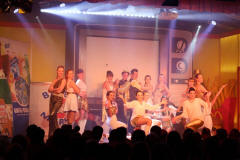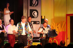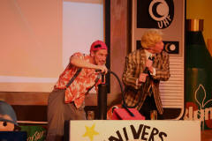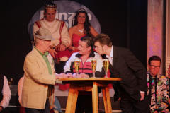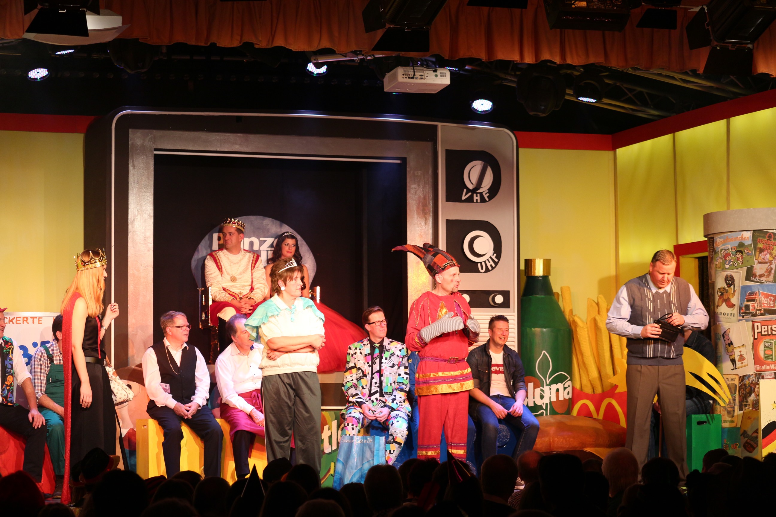 2000 Besucher im Bann der WerbungAls sich der Vorhang öffnet, zeigt sich eine Bühne mit vielen überdimensionalen Produkten, mit viel Liebe und geschickter Handarbeit gefertigt. Im Zentrum steht ein riesiges TV-Gerät, entstanden in der Werkstatt der Schreinerei Jöst in Siedelsbrunn, auf dessen Bildschirm, einer Leinwand, Werbespots der vergangenen Jahrzehnte eingespielt werden und die Besucher emotional einstimmten. Nach den bewegten Leinwandbildern werden die Werbeszenen live gespielt und getanzt.Prinzessin Caroline selbst mit ihren Begleiterinnen präsentieren Cola als Kultgetränk, ein knackiges Männerballett mit Prinz Peter zeigt die neueste Jeansmode, eine ebenso farbenfrohe wie anmutige Choreographie umschreibt eine Fast-Food-Kette, Damen vom Jet-Set demons trieren zuverlässiges Haarspray. Werbung steht im MittelpunktSchließlich steht der OKACLU selbst im Mittelpunkt der Werbung. „We will rock you“, erklingt kultig – und alle Facetten der Stonischer Narre- tei kommen zur Sprache. Zum Ende des von Jörn Brabez inszenierten Er- öffnungss pektakels, das dem Motto des Abends mehr als gerecht wird, zieht das Prinzenpaar mit vielen Protagonisten des Abends durch den Saal ein. Es erklingt das Mottolied 2017: „Die Werbung schafft’s“. Präsident Sven Tietze begrüßt die Gäste in der Werbewelt und stellt das Prinzenpaar vor: Prinz Peter IV. „Münzmeister von der Steinachquelle zum Peterschhof“ und seine Prinzessin Carolin I. Ein erstauntes Raunen geht durch das Publikum, als sich die Leinwand im TV-Gerät aufwickelt und ein Thron erscheint, auf dem Prinz und Prinzessin Platz nehmen und das Geschehen aus gebührend er Höhe verfolgen.Die erste Beifallsrakete des Abends geht einmal mehr an den Odenwäld er Karl, alias Karl Berbner, ein alter Hase in der Narrenbütt, der es in jedem Jahr versteht, die Lachmuskeln seines Publikums zu wecken. Spätestens nach dem WM-Schlachtruf der Isländer, den er mit dem Publikum erschallen lässt, hat er seine Zuhörer „im Griff“. Karl besticht mit Geschichten aus dem Alltag. So berichtet er, er mache jetzt konseque nte Trennkost: Seine Frau esse in der Küche und er im Wohnzimmer. Döner macht schönerEine stonische r Geschichte, hat es der Gruppe Schmink’n Go angetan. Gekonnt und ideenreich inszeniert, bedauern sie in einem gekonnten Rap die Schließung der letzten Stonischer Metzgerei. Plötzlich entpuppen sich die Damen als Dönerverkäufer – eine Hommag e an die neue „Döner-Ecke“, die anstelle der Metzgerei ihren Platz gefunden hat. Einen Trost freilich haben die Damen: Döner macht schöner! Sternsingen als Sozialstunden: Sketch-Comedy vom Feinsten demonstriert Otto Rettig mit seinem Team. Der Autor und Regisseur ist in diesem Jahr als Küster mit den Sternsingern unterwegs. Einziger Haken: die drei waren mit dem Gesetz in Konflikt geraten und mussten als Sternsinger Sozialstunden leisten. Dass dabei so manches Ereignis auf ganz besondere Art interpretiert wird und auch vor der Rathaustür kein Halt macht, ist längst ein Markenz eichen der Sketchtruppe.Als fesche Bananenverkäuferinnen bringen die OKACLU Dreamgirls einen Showtanz mit. Bei südamerikanischen Klängen und Rhythmen, umgesetzt in geschmackvollen Kostümen, lassen sie nicht nur die Männerherzen höher schlagen. Stammtischphilosophie und Musikcomedy Witz, Kritik und Satire, drei Formen, die sich die Stammtischbrüder seit Jahren auf ihre Fahnen schreiben können. In einem ebenso sinnigen wie unsinnigen Dreiergespräch beleuchten sie so manches Ereignis. Dabei wurde es mitunter pseudo-philosophisch. Nach den zwei Gründen gefragt, warum denn Männer Alkohol trinken, kommt die Antwort schnell: entweder sie haben eine Frau oder sie haben keine Frau. Einer, der nie die Sonne sahKomödiantische Kleinkunst in perfekter, auch musikalischer Umsetzung zeigen die Brüder Max und Julius Hintenlang. Eigentlich sollten sie zur Eröffnung der neuen Elb-Philharmonie auftreten doch schienen die Unterschiede in der Interpretation von Liedern, Schlagern und deren Texte bei den beiden zu verschieden. Max, der feine und makellose Moderator trifft auf Julius, den begnadeten Musiker, der allerdings kritisch, herb und derb agiert. Dabei stellen sie fest, dass die Sangeskultur vom Fußball profitiert und dass „El Lute“ letztlich ein „beschissenes“ Leben führte – sah er doch nie die Sonne.Max und Julius sind auch in diesem Jahr wieder ein Höhepunkt der Sitzungen, die kein Auge trocken lassen und die Lachmuskeln gehörig strapazieren. Schon im ersten Sitzungsteil folgt eine Beifallsrakete auf die andere, sind immer wieder Zugabe-Rufe zu hören, ist die Stimmung im Saal stets am Siedepunkt. The Bob and the Bob strapazieren die Lachmuskeln Im traditionellen Sketch nach der Pause spielte das OKACLU-Komitee sein ganzes närrisches Können aus. Aus der Feder von Sebastian Trenkwald und Otto Rettig und unter deren Regie stammte ein gleichermaßen skurriles und buntes wie auch originelles Drehbuch. Die Tochter des großen Werbemoguls, gleichzeitig Prinzessin des OKACLU, wird mit ihrem Prinzgemahl entführt. Letzte Rettung soll das Geschwisterpaar Twix bringen, das sich im Zeichen der Entführung ihrer Schwester wieder vereint. Die Lage spitzt sich zu, als Götterbote Hermes, die Forderungen der Entführer verliest. Die Twix-Brüder machen sich auf die Suche und durchstreifen dabei alle Länder und Kontinente der Welt. In Hessen lernen sie das Kultgetränk „Äppelwoi“ kennen, im Wald treffen sie derbe Holzfäller und in Italien kocht Mama Maria Pasta für sie. Keiner aber weiß etwas über den Verbleib des Prinzenpaares. Satt und müde legen sich die Twix-Brüder schlafen, das Sandmännchen bestreut sie mit Traumpulver, das seine Wirkung nicht verfehlt. Derweil bahnt sich auf der Bühne eine Liaison zwischen Meister Propper und dem Weißen Riesen an. Das wutentbrannte HB-Männchen geht in die Luft und öffnet den Blick auf das entführte Prinzenpaar, das gefesselt im Ba