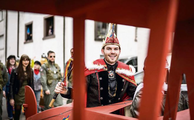 Für Steffen II. startet der „Flug 2020“Spontanität ist alles. Weil das königliche Fluggefährt zu schwer beladen war und nicht pünktlich losfliegen konnte, verzögerte sich die Ankunft von Prinz Steffen II. „vunn Straßburg zu Hardberg“ um eine halbe Stunde. Aber da der Ober-Abtsteinacher Karnevalclub (OKACLU) in seinen Reihen fleißige Narren hat, die sofort zur Hilfe eilten, startete „Flug 2020“ noch rechtzeitig, um dem Prinzen einen gebührenden Empfang zu bereiten.Auf dem Weg zur Hofschänke von Ritter Wolfgang machte der Tross mit Jubel, Trubel und heiterer Stimmung lautstark auf sich aufmerksam. Begleitet von der Hofkapelle, der KKM Ober-Abtsteinach, zog das gesamte Narrenvolk durch die Straßen von Ober-Abtsteinach. Mit dabei natürlich auch Ihre Lieblichkeit, Prinzessin Luisa I., gefolgt von ihrer Motorrad-Gang, den Co-Piloten, Glühbirnen, Friseurinnen, der Leibgarde und natürlich dem Hohen närrischen Rat in Gelb – den ehemaligen Prinzen. Sie winkten dem Volk, das sich an der Straße aufgestellt hatte und neugierige Blicke auf den Prinzen erhaschen wollten, fröhlich zu. Triumphzug mit über 100 NarrenAngeführt von Hofarchivar Bernd vom Burghof und dem Ersten Ritter Al I., legte der Triumphzug, mehr als 100 Fatzvögel nahmen Teil, einen ersten Stopp auf dem Parkplatz eines Gasthauses ein, um gemeinsam zu singen und zu schunkeln – und um dem Prinzen zu huldigen. Das ließ sich auch Pilot und gleichzeitig Prinzessinnenvater, Johannes Arnold, nicht nehmen, dachte dabei aber immer an das Wohl seines Prinzen, seinen Weiterflug und die sichere Ankunft am Zielort.Dort wurde es kuschelig. Während die Hofgarde, in diesem Jahr zum ersten Mal mit männlicher Unterstützung, draußen den Wegzoll einforderte und das Gebiet für einige Stunden zum närrischen Bezirk erklärte, lauschte drinnen das lustige Volk der Laudatio des Hofarchivars. Hierin huldigte er dem Prinzenpaar „allerhöchst Lob“, streifte die Thronbesteigung im November sowie die diesjährige Kampagne mit sieben ausverkauften Sitzungen und über 2200 Besuchern. „Dieses Narrentreiben, stulitiam fingere, hat allen Untertanen viel Freud und Kurzweil bereitet.“ Je länger die Laudatio, umso durstiger wurde der Hofarchivar. Deswegen hatte Mundschenk Stefan Arnold – in weiser Voraussicht – schon zu Beginn, dessen Glas befüllt. Gemeinsam stießen die Narren zwischendurch immer wieder an, gefolgt von „Helau“-Rufen. Die Hofkapelle untermalte das mit kleinen, musikalischen Schmankerln, sodass die Stimmung stets ausgelassen war. Dass das Blut des Prinzen blau ist, belegte der Hofarchivar anhand dessen Abstammung. Auch die Prinzessin entstammt aus einer hoch angesehenen Familie, beide seien schon jahrelang mit dem OKACLU verbunden. Verbundenheit zum OKACLUDas zeigte sich auch in den Fastnachtsorden, die später verliehen wurden. Zu sehen ist die Narrenkappe, die ein Bild des Prinzenpaares einrahmt und in den Farben des OKACLU glänzt. „Bei der Rede ist es mir eiskalt den Rücken runtergelaufen“, lobte Prinz Steffen II. und zollte Hofarchivar Bernd vom Burghof besonderen Respekt, indem er ihm den ersten Orden überreichte.Da das Wohl des Prinzen immer an vorderster Stelle steht, probierte der Mundschenk das königliche Mahl, das traditionell aus Kartoffelwurst mit Brot und Gurken besteht. Er bestätigte, dass es frei von toxischen Zutaten war und gab das Gelage frei. Nicht bevor noch einmal die Humpen gehoben wurden: „Es lebe das erlauchte Prinzenpaar – es lebe die Stonischer Fastnacht“, wie sich der Hofarchivar ausdrückte. Helau! |
