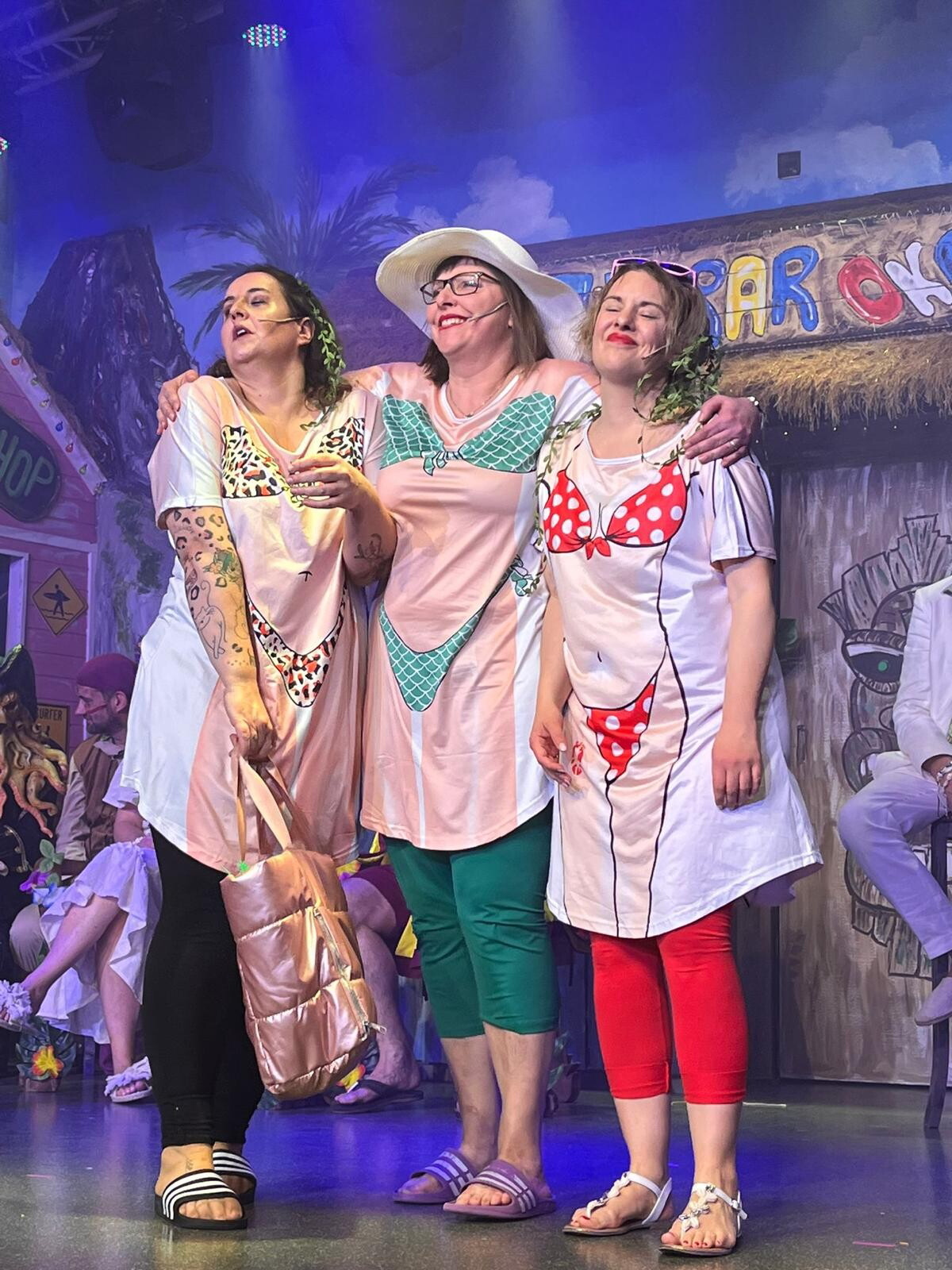 Wo der Prinz zum „Big Kahuna“ wirdVon dem deutschen Winter mit Eis und Schnee war im Ober-Abtsteinacher Jugendheim an den vergangenen drei Wochenenden wenig zu spüren. Stattdessen ging es mit dem OKACLU bei insgesamt sieben blitzschnell ausverkauften Prunksitzungen mit Tiki-Bar, Strandatmosphäre und Blütenketten ab auf die Insel Hawaii.Nur passend, dass sich gleich zu Anfang des Abends Urlauber im Hawaii-Hemd und Bermuda-Shorts, athletische Surfer, Rettungsschwimmerinnen in roter Kluft und sogar Tiki-Krieger auf der Bühne einfanden, um den bunten Abend zu eröffnen und das amtierende Prinzenpaar zu begrüßen. Prinz Dennis I. „Big Kahuna und Aloha-Regent des Shaka-Throns von der Steinachbucht“ und seine Lieblichkeit Nadine I. präsentierten sich dabei nicht im royalen, sondern im passend legeren Dress. Was folgte, war ein knapp vierstündiges Programm rund um den „Aloha State“ mit reichlich Sommerflair und Urlaubsstimmung. Präsident Claudius Disam, der wie üblich charmant durch die Sitzung führte, wurde in diesem Jahr von Sebastian Trenkwald unterstützt, mit dem er sich immer wieder einen Schlagabtausch lieferte. Über die Tücken des UrlaubsDabei, sich mal so richtig locker zu machen, half die Lachtherapie bei den Büttenreden. Nicht wegzudenken ist dabei der OKACLU-Lehrer Sascha Bassauer, der dem Publikum von den Eskapaden aus dem Schulalltag berichtete. Zum Beispiel von einem Ausflug auf den Flugplatz „praxisnaher Unterricht“, wie es der Pädagoge nannte mit ungeahnten Konsequenzen. Oder vom Gespräch mit den Eltern, die das Quadrat bei Tetris drehen würden. Oder von der Kollegin, die sich einen neuen Freund geangelt hat und wissen will, ab wann eine Beziehung ernst ist. Doch auch privat hat er es nicht leicht, denn ein Besuch beim Schwager, der mit einer anschließenden Nachbesprechung im Auto einhergeht, kann selbst für die eigene Beziehung zur Zerreißprobe werden. Dass Schüler Tom Beckenbach dann mit der Gitarre ankommt, um ein Lied anzustimmen, hat ihm gerade noch gefehlt.Ebenfalls auf die Insel gefunden hatte Hausmeister Tobias Kohl, der im vergangenen Jahr sein Debüt feierte. Der war allerdings diesmal ebenfalls im Urlaub wo ihn der Beruf doch nicht so ganz losließ. Denn im Paradies traf er auf Berufskollegen Alexander Kohl. Was als Fachsimpelei über das geeignete Arbeitsgerät und die beste Technik beginnt, entwickelt sich zum Streitgespräch über die richtige Qualifikation, und geht schließlich zum Thema „Ehefrau“ über. Während der eine diese nämlich mit auf die Trauminsel nehmen musste, ist der andere als „Austauschhausmeister“ dort eben ganz allein. Nach hinten los ging dagegen die Kreuzfahrt der Stoanischer Dorfratschen Catherine Becker, Kathrin Lammer und Theresa Disam. Denn beim Ausruf „Mann über Bord“ war eine einfach hinterhergesprungen es könnte ja der Traummann sein. Doch auch in einer Beziehung laufe nicht immer alles glatt: Das Polizeirollenspiel mit Verhaftung wegen „Gut im Bett“ sei aufgrund eines „Mangels an Beweisen“ eingestellt worden und statt des erträumten Diamantschmucks gab es zu allem Überfluss ein Traumdeutungsbuch. Bei allen Sticheleien die eine hat einen Notfallcocktail in der Tasche und die Nächste sei „intellektuell auf Diät“ und habe einen Korb von ihrem eigenen Echo bekommen und bissigen Kommentaren gegen die Herren der Schöpfung bemerken sie: Sie sind nicht allein. Animationsteam Sascha Bassauer und Justine Hintenlang alias Honolulu-Holger und Waikiki-Kiki tauchen auf und sorgen für Tanzstimmung. Musik trifft ComedyKann Kleidung ein Instrument sein? Maximilian und Julius Hintenlang würden diese Frage mit „Ja“ beantworten. Dank cleverer Technik waren sie mit bunten Knöpfen, die entlang des Bauchs und der Beine verteilt waren, ausgestattet; jeder davon auf einen Ton programmiert. Und so spielten die beiden ein Medley erschiedenster Partyhits, bei dem es das Publikum nicht auf den Bänken hielt und es laut mitsang.Ihr Debüt feierte das Trio „Two and a Half Odenwälder“. Mit gekonnt aneinander geschnittenen Musikschnipseln präsentierten Felix Trenkwald, David Gölz und Christoph Sperker einen perfekt durchchoreographierten, musikalischen Sketch, wobei die Songtexte die Geschichte erzählten. Gölz schmiss sich dafür blitzschnell in eine blonde Perücke und ein weißes Minikleid über und verdrehte den beiden Herren den Kopf, die dann um das Herz der Schönen kämpften die aber sichtlich einen Favoriten hatte. Nach ihrer energetischen Techno Tanzeinlage am Ende forderte das Publikum eine lautstarke Zugabe. Energiegeladene TänzeAn diese knüpften die Tanzgruppen an. Die „Dream Girls“ verwandelten sich in feuerrote Paradiesvögel, die ihre Federfächer zu traditionell anmutenden und modernen Party-Rhythmen schwangen. Die mit Hibiskusblüten geschmückte Garde begeisterte das Publikum mit ihren akrobatischen Kunststücken: von Hebefiguren über Sprünge bis hin zu Überschlägen und Würfen und Ballett-Einlagen oder einem Schwimmen in der Luft.Fast genauso sportlich nahm es das Showballett: Die Tänzerinnen verbanden den „Iron Man“-Triathlon mit einem Queen-Medley und der ikonisch gelben Schnallenjacke und rockten zu den bekannten Melodien wobei Tobias Kohl als Sportler auf einem Fahrrad zwischen ihnen herumradelte und es schließlich auch über die Ziellinie schaffte. „No Limit“ ließ sich von dem Disney-Film „Vaiana“ inspirieren und schipperte mit dunkler Mähne, Blumenkrone und Bastrock mit einem waschechten Boot über die Bühne inklusive eines Auftritts von Faschingsprinz Dennis als tattoobedeckter Halbgott Maui. Abenteuer auf der InselDieses Kostüm kam auch bei dem Sketch nach der Pause zum Einsatz, der traditionell dem Prinzenpaar vorbehalten ist. Die böse Zauberin Ursula oder auch „garstig Ursel“, wie sie Erzähler Sebastian Trenkwald nannte hatte von der Prinzessin Lilo eine magische Blume gestohlen. Gemeinsam machten sich ihr Prinz und sein bl